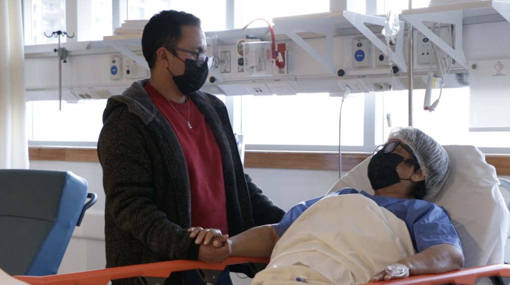Tal como complementa Alicia, “la verdad es que es bueno que hagan correr la lista de espera. Mi esposo también estuvo en lista de espera para operarse, antes de que pasara la pandemia, y resulta que también esperó más o menos como dos años. Pero, salimos de esto y ahora me toca a mí, y en este Hospital nuevo más encima. Es bueno, bonito, es una linda experiencia, y a la edad que tengo yo, de 59 años, me tocó justo aquí en Hospital nuevo, que está bonito, parece clínica, es todo muy precioso. Vine acompañada con mi hijo, estoy contenta y Dios quiera que todo salga bien”.