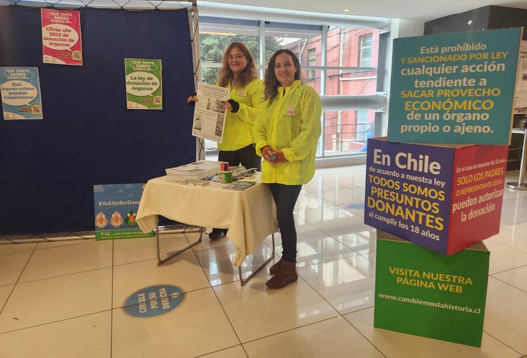 ¿Sabías que, por ley todas las personas mayores de 18 años son donantes de órganos y tejidos, a menos que estén inscritas en el Registro Nacional de No Donantes? ¿Y sabías que, la tasa de donación de órganos en Chile está muy por debajo de la del resto de los países de Latinoamérica? Estos son solo algunos de los datos más relevantes respecto a la donación de órganos y que fueron exhibidos en un stand en el hall del Hospital Dr. Gustavo Fricke por la Fundación “Cambiemos la Historia”. La organización sin fines de lucro intenta crear conciencia respecto a este tema y la Subdirección de Gestión del Usuario de nuestro recinto, puso a disposición el espacio para su difusión.