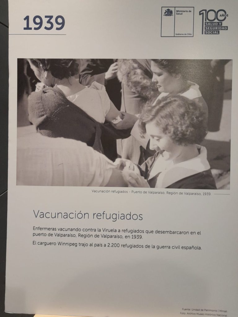 En el contexto de los 100 años de la creación del Ministerio de Salud y Previsión Social, la personera enfatizó que “ello sin duda nos genera estas reflexiones que hoy día estamos haciendo en conjunto con la comunidad usuaria, en el sentido de recordar cómo la vacunación y el Ministerio de Salud se ha ido incorporando en nuestras vidas, entregando una de estas pequeñas dosis de inmunidad, pero también la costumbre de entender que vivimos en comunidad y que las acciones individuales deben siempre sumarse a las acciones colectivas”. “La inmunización individual – agregó – es una tarea individual, pero entendida en un contexto colectivo, porque juntos nos cuidamos más y eso es lo que esta muestra refleja en cada lámina, es el recuerdo de cómo hemos ido construyéndonos en una comunidad de usuarios, funcionarios, ciudadanía, en definitiva la patria que somos, incorporando esta fuerza que se recoge en las políticas públicas que nuestro Ministerio de Salud en estos 100 años nos está recordando”.