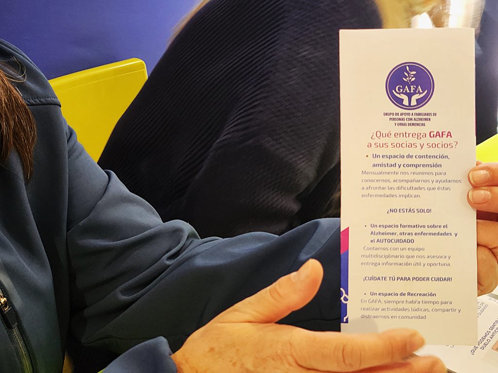Y así como es importante cuidar de esos pacientes, lo es también cuidar a sus familiares, quienes se dedican a atender, asistir y velar por el bienestar – la mayoría del tiempo en casa – de estas personas. Por ello el Hospital Dr. Gustavo Fricke ha contribuido en la difusión de espacios dedicados a ello, recibiendo por estos días a GAFA; un grupo de apoyo a familiares de personas con Alzheimer y otras demencias.