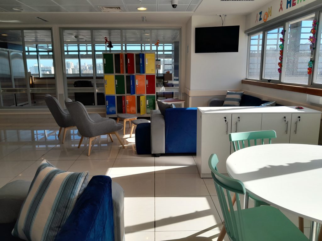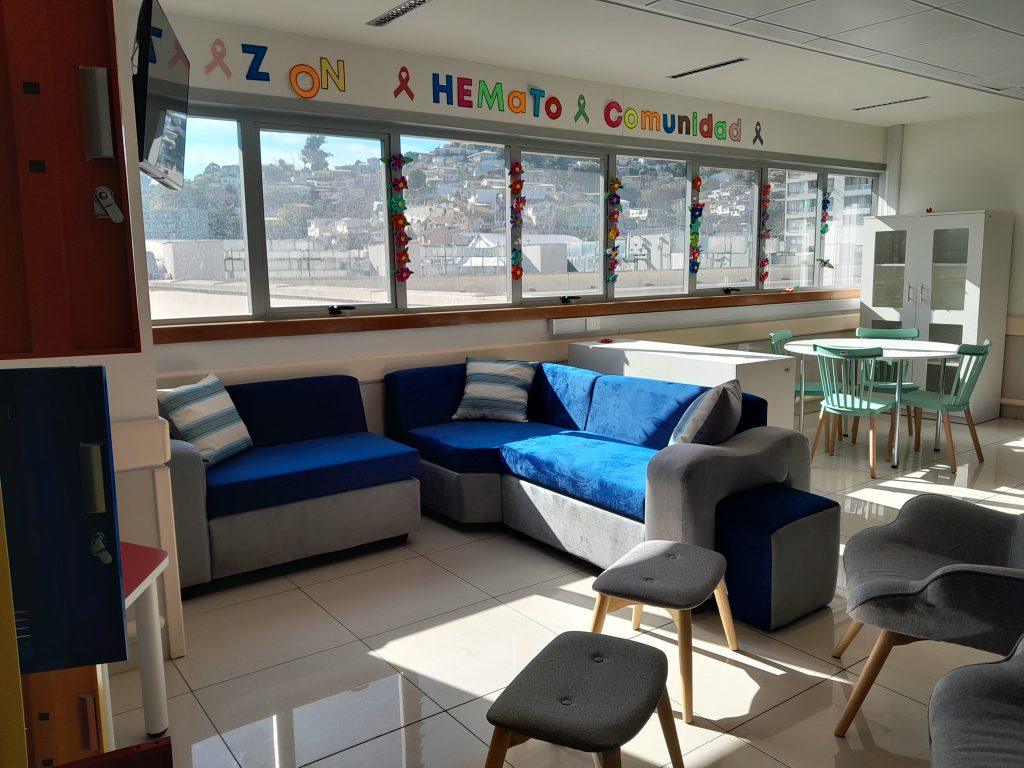 El acondicionamiento de este espacio, con una inversión superior a los 6 millones de pesos, contempló sillas, mesa de comedor, sillones, sofás modulares, muebles y casilleros, y respondió a una encuesta donde los papás pudieron plasmar sus necesidades para convertir una sala de estar en una pequeña casa. La Dra. Paulina Díaz, Jefa de la unidad de Hemato Oncología Pediátrica, afirma que “tener ahora este espacio desde ahora mismo es muy útil para ellos, también para nosotros, para sentir que los estamos acompañando no solo en lo médico, no solo en lo técnico, sino que en la parte también de confort, de estar más tranquilos, de poder conversar con otros papás y mamás, de desahogarse y eso es como sentirse en casa también, en un lugar más acogedor. Papás tranquilos son niños más tranquilos, así que eso es un gran aporte”.