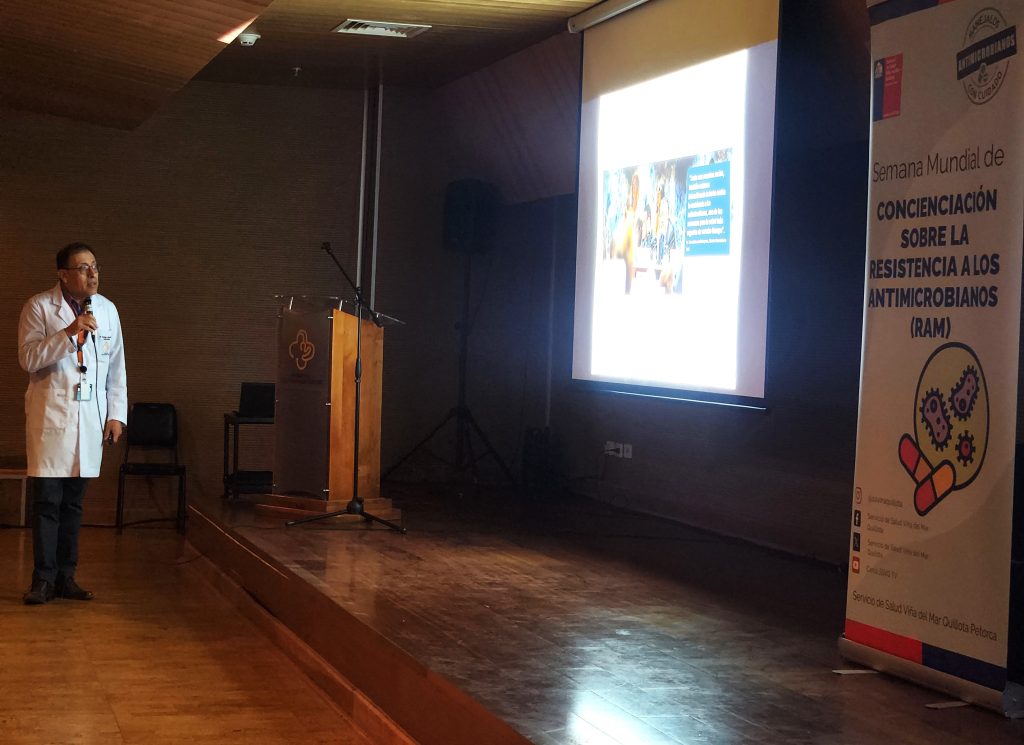 En ese contexto y en el marco de la conmemoración mundial de la semana antimicrobiana, el Hospital Dr. Gustavo Fricke desarrolló con éxito la conferencia “Impacto del programa de optimización de uso de antimicrobianos” comandada por la Unidad de Infecciones Asociadas a la Atención de la Salud (IAAS), quienes instaron a los funcionarios a poner especial énfasis en este problema que se traduce en enfermedades prolongadas, estancias hospitalarias más largas y la necesidad de medicamentos más especializados.