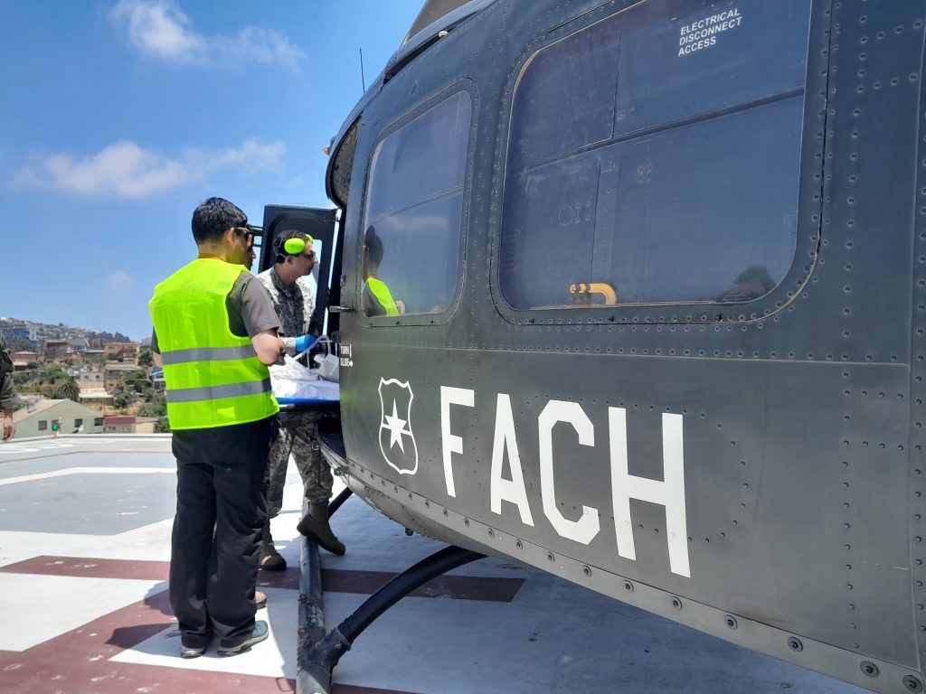 Como lo explica el Dr. Erich Liebig, Coordinador de Emergencia y Desastre del SSVQP, “ejemplo de esto son el infarto agudo al miocardio en ventana para angioplastia primaria, el ACV (accidente cerebro vascular) que puede verse beneficiado por un procedimiento como la trombectomía mecánica, así como también casos de emergencia como el poli traumatismo grave, gran quemado, que son situaciones que hemos visto en nuestra historia como servicio de salud integrado. Tener aero evacuación con equipos calificados que ha seguido un proceso de entrenamiento, que se coordinan entre sí con una red que se activa como muchas hebras que componen un tejido robusto, permite que la brecha territorial sea vencida con el propósito de que nos une, que es una mejor atención para nuestros pacientes”.