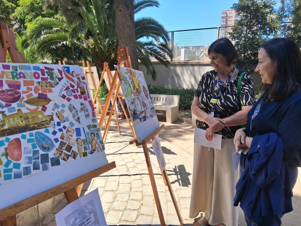 Velia Figueroa, terapeuta ocupacional del Programa de Rehabilitación Psicosocial del establecimiento, explica que este enriquecedor proceso ha implicado meses de trabajo para lograr la autonomía y la participación de los usuarios. “Partimos la creación de esta exposición yendo a hacer salidas por Viña del Mar, fuimos a lugares típicos, al Reloj de Flores, para que ellos se pudieran empapar con todo lo que ocurre en el momento del verano en Viña del Mar. De hecho fueron con croquis, fueron haciendo dibujos, tomando notas y después todo eso lo plasmaron en la técnica del collage”.