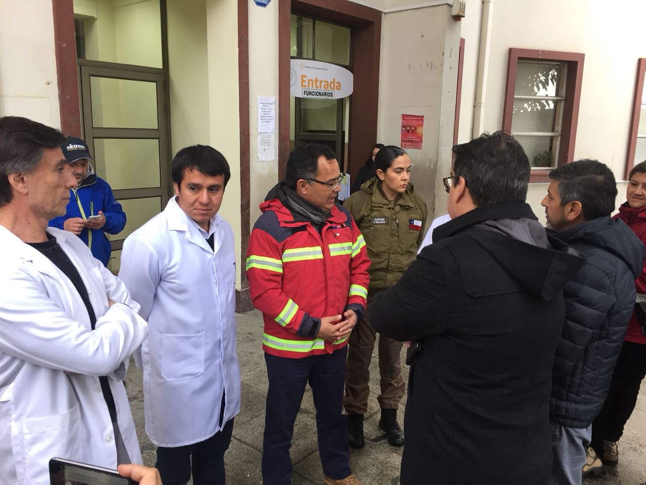 Para conocer en terreno el funcionamiento del Hospital Dr. Gustavo Fricke de la red SSVQ, tras el intenso sistema frontal, el Intendente de la Región de Valparaíso; Jorge Martínez junto al Seremi Francisco Alvarez, el Director Regional de ONEMI, Guillermo de la Maza y la Seremi de Gobierno Leslie Briones llegaron hasta el recinto asistencial, siendo guiados por el Director del SSVQ, Dr. Leonardo Reyes; el Director del Hospital, Juan Carlos Gac y el Subdirector Médico del Hospital, Dr. Osvaldo Becerra.